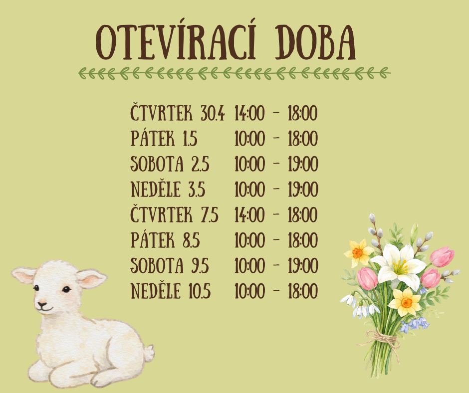 NA ZELENÝ ČTVRTEK BUDE OTEVŘENO 14:00 – 18:00